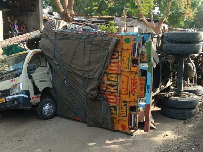 टेम्पो व मोटारसायकलवर ट्रक उलटून अपघात