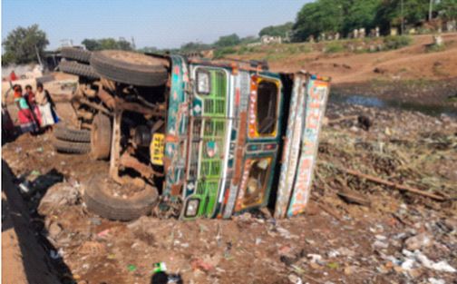 याबाबत असे की, बुधवारी पहाटे बोरद, ता.तळोदा येथून ऊसाने भरलेला ट्रक क्रमांक एमएच १८ - एम ७७६१ हा मध्यप्रदेशातील दुर्गा खांडसरी येथे जात होता. नदीला लागून असलेल्या वळण रस्त्याचा अंदाज न आल्याने भरधाव जाणारा ट्रक कन्हेरी नदीत उलटला. यात ट्रक चालक व क्लिनर जखमी झाले आहे. या दोघांनाही ग्रामीण रूग्णालयात दाखल केले आहे.