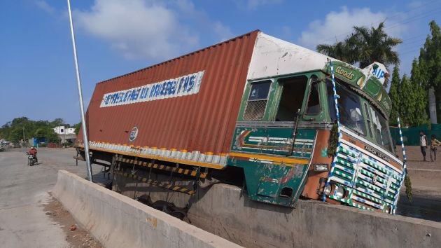 लोकमत न्यूज नेटवर्कब्राम्हणपुरी : शहादा तालुक्यातील खेडदिगर गावानजीक असलेल्या दुभाजकावर कंटेनर आदळून अपघात झाल्याची घटना पहाटे चार वाजेच्या सुमारास घडली. यात सुदैवाने जीवितहानी टळली, दोघेजण किरकोळ जखमी झाले आहेत.रविवारी पहाटेच्या सुमारास कंटेनर (क्रमांक जी.जे १५ वाय. वाय. ७३४१) शहादा कडून खेतीया कडे जात असताना शहादा खेतीया रस्त्यावरील खेडदिगर गावानजीक असलेल्या बाबा लॉज जवळ दुभाजकावर जाऊन आदळली. अपघात घडला त्यात सुदैवाने जीवितहानी टळली. अपघातात कंटेनर चे मोठ्या प्रमाणावर नुकसान झाल्याचे दिसून आले. जोराचा आवाज झाल्याने परिसरातील नागरिक घटनास्थळी मदतीसाठी धावले. दुभाजकावर रिफ्लेक्टर नसल्याने अचानक दुभाजक दिसून आला नसल्याने हा अपघात झाल्याचे समजते.काही दिवसांपूर्वी घ्याच ठिकाणी एका खाजगी प्रवासी वाहतूक करणारी बस चा अपघात झाला होता त्यावेळेस जीवितहानी झाली नाही. या ठिकाणी दिशादर्शक रिफ्लेकटर बसवण्याची मागणी होत आहे.रस्त्याचे काम करतांना अनेक बाबी सोडून देण्यात आल्या आहेत. त्यात रिफ्लेक्टर, दिशादर्शक फलक, पांढरे पट्टे मारणे यासह इतर बाबींचा समावेश आहे. त्यामुळे चालकाला अनेक समस्यांना सामोरे जावे लागत असते. त्यातून अपघात होतात.