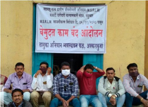 महिला सक्षमीकरण गरीबी निर्मुलनासोबत शिक्षण, आरोग्य, पोषण, उपजिविका यावर आधारित व्यवसाय निर्मिती, पंचायत राज संस्थेत सहभागी आरएसईटीआय व डीडीयूजीकेवाययांतर्गत रोजगारभिमुख व्यवसाय प्रशिक्षणे राबवत जीवनोन्नती अभियानाची वाटचाल सुरू आहे. हे सर्व सुरू असतानाच राज्य स्तरावर सप्टेंबर २०२० मध्ये प्रभारी मुख्य कार्यकारी अधिकारी प्रविण जैन यांनी ज्या कंत्राटी कर्मचा-यांचे सेवा आदेश संपुष्टात आले आहेत. त्यांना सेवा आदेश देवू नयेत तसेच सीएससी या बाह्यस्थ संस्थेकडे अभियान सोपवण्यात आले आहे. या संस्थेकडे अभियान जावू नये तसेच अभियान केंद्र शासनाच्या मार्गदर्शिकेप्रमाणे पूर्ववत सुरू ठेवावे यासाठी राज्यातील ३ हजार कंत्राटी कर्मचारी सध्या संपावर आहेत. राज्य कंत्राटी कर्मचारी कल्याणकारी मंडळाने ही संपाची हाक दिली आहे. एमएसआरएलएमकडून या सर्व गोंधळात ऑगस्ट महिन्यापासून कर्मचा-यांचे वेतन थकवण्यात आले आहे. तीन महिन्यांपासून वेतन नसल्याने कर्मचा-यांवर उपासमारीची वेळ आली आहेे. हे वेतन देण्यासह सेवाआदेश द्यावेत यामागणीसाठी जिल्ह्यात आंदोलन सुरू असून आंदोलनात यशवंत ठाकूर, उमेश अहिरराव, संतोष पगारे, अजय जाधव, नाना पावरा, सचिन बोरसे, योगेश पाटील, निलेश वसावे, अशोक साळवे, मीनाक्षी वळवी, अलका पाडवी, कविता एडगे, पिंकी वळवी यांच्यासह कंत्राटी कर्मचारी सहभागी झाले होते.