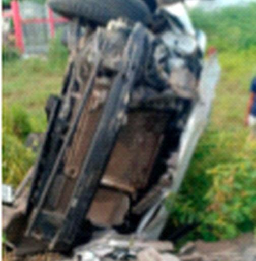 तीन वेळा उलटून वाहन पडले रस्त्याच्या खाली