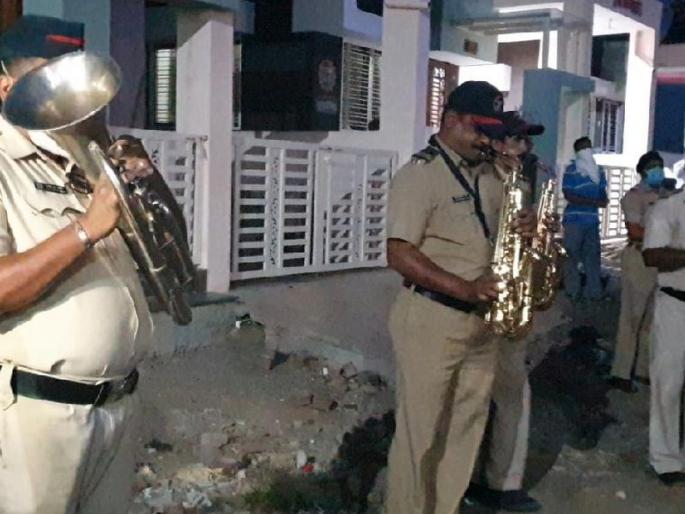 कोरोनामुक्त पोलीसाचे बँड लावून स्वागत