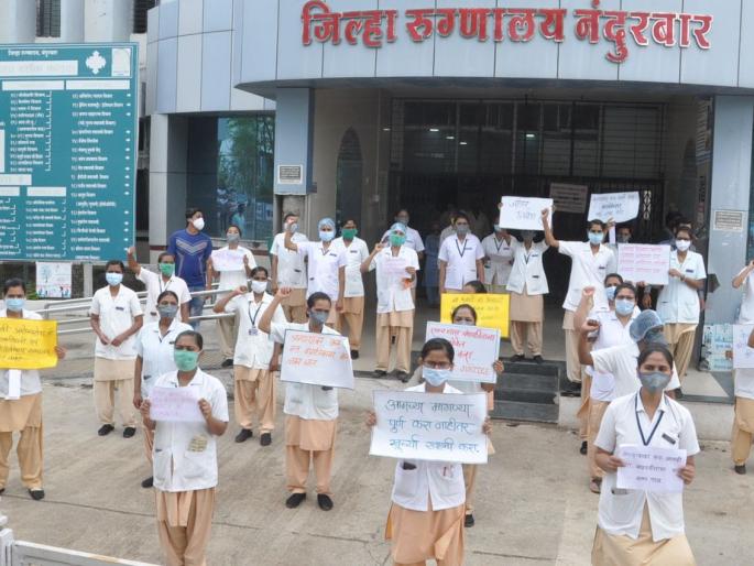 नंदुरबार : विविध मागण्यांसाठी बंधपत्रीत अधिपरिचारिकांनी सोमवारी विविध मागण्यांसाठी एक दिवसाचे कामबंद आंदोलन पुकारले आहे. या आंदोलनाची दखल न घेतल्यास सामुहिक विनावेतन रजेवर जाऊन साखळी उपोषणाचा इशारा आंदोलक अधीपरिचाकांनी दिला आहे.
