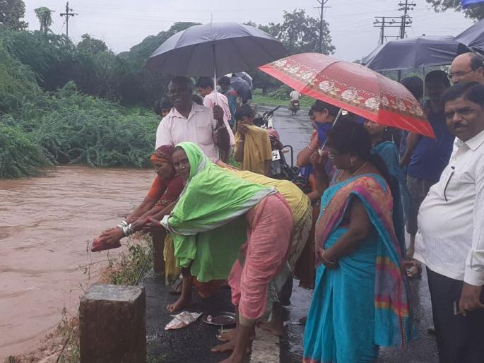 लोकमत न्यूज नेटवर्कबोरद : तळोदा तालुक्यातील मोड येथे निझरा आलेल्या पुरामुळे नदीपात्रात खोदण्यात आलेले खड्डे पूर्णपणे भरल्याने शेतक:यांनी आनंद व्यक्त करत जलपूजन केल़े यावेळी ग्रामस्थ उपस्थित होत़ेतळोदा तालुक्यातील विविध भागात गत पाच दिवसात संततधार पावसाने हजेरी लावली़ निझरा नदीच्या उगमक्षेत्रात मुसळधार पाऊस झाल्याने पुर येऊन धनपूर धरण पूर्णपणे भरले होत़े धरणाच्या सांडव्यातून निघालेल्या पाण्यामुळे निझरा नदी दुथडी भरुन वाहू लागली होती़ यातून मोड येथील ग्रामस्थांनी नदीपात्रात जलसंधारण व्हावे यासाठी खोदलेल्या 13 खड्डय़ांमध्ये जलसाठा झाल्याने पाण्याचा निचरा सुरु झाला होता़ मोड येथे पाहणीसाठी आलेल्या अधिका:यांनी याठिकाणीही भेट देत पाहणी केली होती़ तीन वर्षाच्या कालावधीनंतर नदीला आलेल्या पुराचे तसेच खोदलेल्या खड्डय़ांमधील पाण्याचे पूजन करण्यात आल़े यावेळी सरपंच जयसिंग माळी, गटविकास अधिकारी सावित्री खर्डे, तहसीलदार पंकजकुमार लोखंडे, माजी सरपंच तापीबाई माळी, पुरुषोत्तम चव्हाण, दिलीप पाटील, ब्रिजलाल चव्हाण, भीमा चौधरी, भगवान चौधरी, जितेंद्र राजपूत, मंगलसिंग राजपूत यांच्यासह मोड आणि आष्टे गावातील शेतकरी उपस्थित होत़े