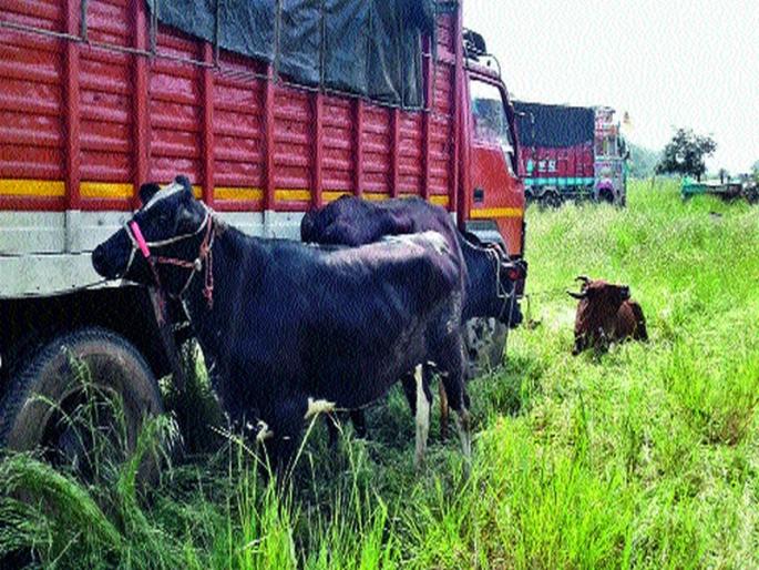 मुंबई आग्रा महामार्गावर अवैधरित्या जनावरे कत्तलखान्याकडे घेऊन जाणारा आयशर ट्रक ओझरच्या नागरिकांच्या सहकार्याने ओझर पोलिसांनी महामार्गावर पकडून ट्रक व जनावरे असा एकूण सव्वासहा लाख रूपयांचा माल जप्त केला असून एका इसमास अटक केली आहे .