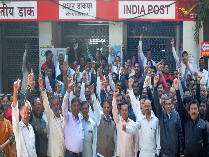 नाशिक : टपाल कर्मचारी, पोस्टमन व ग्रामीण डाक सेवकांनी पुकारलेल्या दोन दिवसीय लाक्षणिक संपाचा मोठा परिणाम शहरासह जिल्ह्यातील टपालसेवेवर झाला. मंगळवारी (दि.८) शहरातील मुख्य डाक घरसह उप डाकघरांमध्ये शुकशुकाट दिसून आला तर मुख्य डाकघराच्या आवारात संपात सहभागी कर्मचाऱ्यांची गर्दी पहावयास मिळाली. कर्मचा-यांनी एकत्र येत जोरदार घोषणाबाजी करत परिसर दणाणून सोडला. संपामुळे टपाल खात्याला दैनंदिन आर्थिक व्यवहारांमधून मिळणा-या लाखोंच्या उत्पन्नावर पाणी सोडावे लागले तसेच नागरिकांनाही टपालाचे व्यवहारांपासून वंचित रहावे लागले.सरकारने सर्वांसाठी केलेली ‘अच्छे दिन’ची घोेषणा केवळ कागदोपत्रीच राहिली तसेच शेतक-यांपासून कामगारांपर्यंत सर्वांचीच सरकारी धोरणांमुळे कुचंबणा झाली. सातवा वेतन आयोग लागू करताना विविध भत्त्यांवर पाणी सोडले गेले आणि धनदांडग्यांना सवलतीचा लाभ सरकारकडून करुन दिला गेल्याचा आरोप करत संयुक्त कृती समिती नाशिक टपाल विभागाने एकत्र येत दोन दिवसांचा लाक्षणिक संप पुकारला. या संपात इंडिया पोस्टल एम्प्लॉइज युनियन (एनएफपीई), नॅशनल युनियन पोस्टल एम्प्लॉईज (एफएनपीओ) या संघटनांमधील गट क व पोस्टमन व गट ड (एमटीएस) श्रेणीतील सर्व कर्मचारी वर्ग संपात सहभागी झाला आहे. एकूणच टपालविभागाचे जवळपास सर्वच कामगार संपात उतरल्यामुळे टपाल कार्यालयातील कामकाज दिवसभर बंद राहिले.महापालिका हद्दीतील ३० कार्यालयांमधील दैनंदिन टपाल बॅँकीगचे आर्थिक व्यवहार कोलमडले होते. आर्थिक देवाणघेवाण दैनंदिन व्यवहारातून होऊ शकली नाही त्यामुळे लाखो रुपयांचे मिळणारे उत्पन्न बुडाले. तसेच रेल्वे मेल सर्व्हीस ठप्प झाल्याने तेथून विविध शहरांमधून नाशिकसाठी आलेल्या टपालाचा बटवडा होऊ शकला नाही. परिणामी मुख्य डाकघरापर्यंत टपालचा पुरवठाच होऊ शकला नाही. परिणामी शहरासह जिल्ह्याचे टपाल ‘आरएमएस’मध्ये पडून राहिल्याची माहिती सुत्रांनी दिली. या संपात इंडिया जीडीएस युनियन, भारतीय डाक कर्मचारी महासंघ सहभागी नसल्याने २४ कर्मचा-यांनी मुख्य डाकघरात हजेरी लावली.
