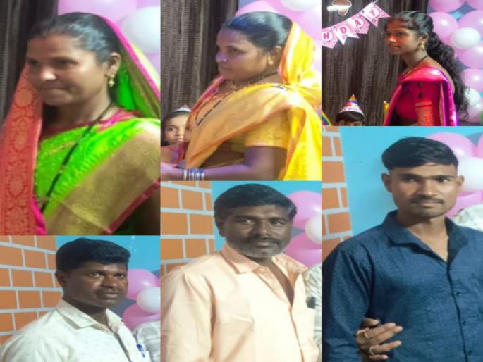 मोटर सायकल वरील मंगेश यशवंत कुरघडे (वय-२५ ) अजय जगन्नाथ गोंद (वय -१ ) रा. नडगे गोट, तालुका जव्हार, जिल्हा पालघर सध्या राहणार पिंपळगाव सातपूर हे जखमी असून त्यांना पुढील उपचारासाठी नाशिक जिल्हा रुग्णालयात दाखल केले आहे. मृतांमध्ये देविदास पंडित गांगुर्डे, (वय २८) रा. सारसाळे ता. दिंडोरी, जिल्हा -नाशिक, मनीषा देविदास गांगुर्डे (वय२३), रा. सारसाळे ता. दिंडोरी, जिल्हा. नाशिक, उत्तम एकनाथ जाधव (वय ४२) रा. कोशिंबे, ता दिंडोरी, जिल्हा नाशिक, अलका उत्तम जाधव,( वय ३८ ) रा. कोशिंबे ता. दिंडोरी जिल्हा. नाशिक, दत्तात्रेय नामदेव वाघमारे, (वय ४५) रा. देवपूर, देवठाण ता. दिंडोरी, जिल्हा नाशिक, अनुसया दत्तात्रय वाघमारे, (वय ४०) रा देवपूर, देवठाण ता. दिंडोरी, जिल्हा नाशिक आणि भावेश देविदास गांगुर्डे,( वय २) रा. सारसाळे, ता दिंडोरी, जिल्हा नाशिक यांचा समावेश आहे.