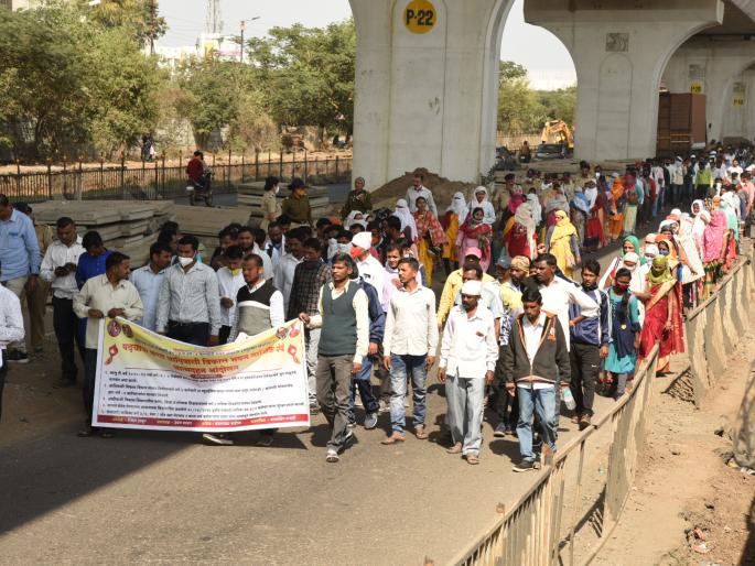 नाशिक : आदिवासी विकास आयुक्तांनी लेखी दिल्यानंतर राज्यातील आदिवासी विभागातील रोजंदारी वर्ग ३ व वर्ग ४ कर्मचारी संघर्ष संघटनेने आंदोलन स्थगित केले. पदयात्रेद्वारे या आंदोलकांनी थेट आयुक्तालयावर धडक दिली.छत्रपती सेनेच्या वतीने विशेष पोलीस महानिरीक्षक प्रताप दिघावकर यांना निवेदन देण्यात आले असून, रितेश ठाकूर यांनी रोजंदारी शिक्षकांकडून कोट्यवधीची रक्कम घेतल्याचा आरोप करण्यात आला आहे. कोविड काळात तासिका, रोजंदारी कर्मचाऱ्यांचे जूनपासून मानधन न मिळाल्यामुळे सामूहिक आत्मदहन आंदोलन करण्याचा इशारा देण्यात आला होता. आंदोलकांच्या पदयात्रेला काही अंतरावरच पोलिसांनी अडविले. अप्पर आयुक्त आणि उपायुक्तांनी आंदोलनकर्त्यांशी चर्चा करून मागण्या मान्य करत, आयुक्तांच्या सहीचे लेखी पत्र दिले. मात्र, या पत्रात स्पष्ट आदेश नसल्याने मोर्चेकऱ्यांनी पत्र स्वीकारण्यास नकार देत आयुक्त कार्यालयावर धडक दिली. चर्चेतून तोडगा निघाल्याने आंदोलन स्थगित करण्यात आले. आंदोलनात राज्यभरातील कर्मचारी सहभागी झाले होते.