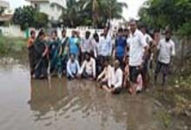 संतप्त नागरिकांनी नगरसेवक मदन गायकवाड, विनोद वाघ, राजू शेलार, सुवर्णा शेलार, सरोज पवार यांच्या नेतृत्वाखाली नागरिकांनी पाण्यामध्ये बसून आंदोलन केले. मनपा आयुक्त भालचंद्र गोसावी, सहायक आयुक्त अनिल पारखे, प्रभाग अधिकारी बडगुजर यांच्यासह अग्निशमन विभागाचे संजय पवार यांनी धाव घेऊन परिसरातील समस्या सोडविण्याचे आश्वासन दिल्यामुळे आंदोलन मागे घेण्यात आले.