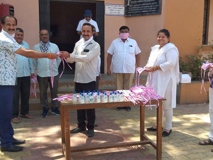 कळवण : कोरोना विषाणूचा संसर्ग रोखण्यासाठी कळवण न्यायालयातील कर्मचाऱ्यांना मास्क व सॅनिटायझरचे वाटप करण्यात आले. यावेळी सोशल डिस्टंसिंगचे काटेकोरपणे पालन करण्यात आले.
