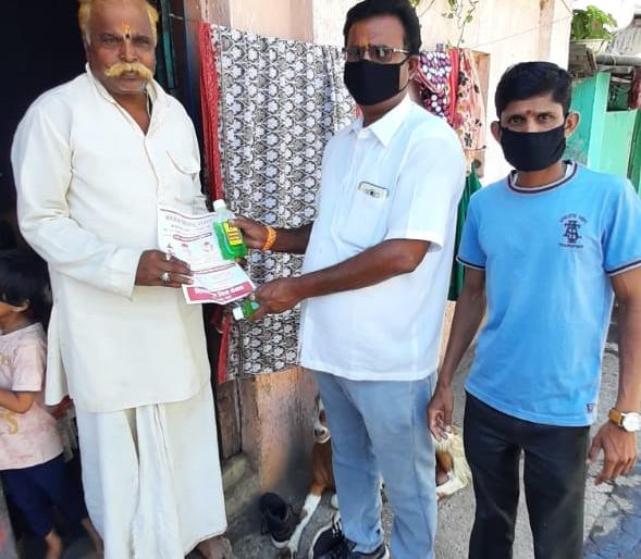 घोटी : कोरोनाचा प्रादूर्भाव रोखण्यासाठी रामरावनगर येथील शिवमल्हार मित्र मंडळाच्या वतीने स्वच्छतेचे महत्व पटवून जनजागृती करण्यासोबतच शहरातील १३०० कुटूंबांना सॅनेटायझरचे वाटप करण्यात आले.