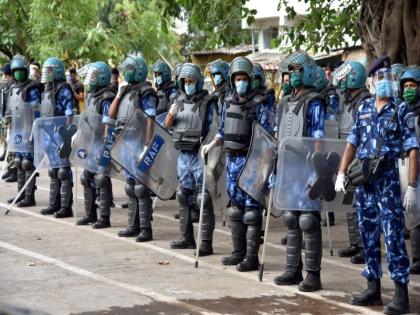 भद्रकाली पोलीस ठाण्यापासून परस्परांमध्ये ‘अंतर’ राखत जवानांनी सशस्त्र संचलन सुरू केले. हातामध्ये अत्याधुनिक गन, लाठी तोंडावर फेस शिल्ड मास्क घातलेले निळ्या वर्दीतील जवान रस्त्यांवर उतरल्याचे पाहून नागरिकांची भंबेरी