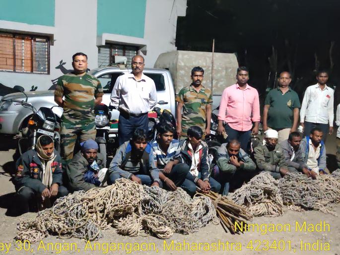 वनविभागाने केलेल्या या कारवाईत देवराम अरुण चव्हाण, गणेश रघुनाथ चौधरी, गुलाब रामचंद्र पालवी, (सर्व, रा. कोल्हेर, ता. दिंडोरी), साहेबराव हरी चौधरी, मोहन चंदर चौधरी, लक्ष्मण दत्तू चौरे (सर्व, रा. पिंपरी आंचला, ता. दिंडोरी) पंडित हरी चौधरी, अनिल पुंडलिक चौरे (सर्व, रा. हिंगळवाडी, ता. कळवण), लक्ष्मण हरी मोंडे (रा. अंबानेर, ता. दिंडोरी) यांच्याविरुद्ध वन्यप्राणी संरक्षण अधिनियम १९७२ अन्वये गुन्हा दाखल करण्यात आलेला आहे.