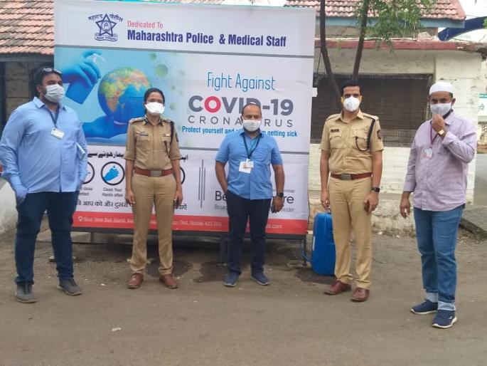 मालेगाव शहरात दररोज कोरोना बाधीत रु ग्ण संख्येत लक्षणीय वाढ होत असल्याचे आकडेवारीवरून दिसून येत आहे. यामुळे शहर उत्तर महाराष्ट्रातील कोरोनाचे हॉटस्पॉट ठरु पाहत आहे.कोरोना विरु द्ध लढ्यात यशस्वीतेसाठी आरोग्य,महसुल व पोलीस दल सुक्ष्म नियोजन करून अहोरात्र मेहनत घेत आहेत. त्याअनुषंगाने शहरात स्थानिक पोलीस कर्मचारी व्यतिरिक्त एकुण चार राज्य राखीव दलाच्या तुकड्या,चार उप विभागीय पोलीस अधिकारी, ४० अधिकारी व बीड, जालना, जळगाव,धुळेसह नाशिक येथुन ६०० पोलीस कर्मचाऱ्यांना बंदोबस्तकामी तैनात करण्यात आले आहे. या पोलीस कर्मचाºयांना कोरोना बाधित रु ग्ण आढळून आल्याने प्रतिबंधक परिसरात ते जीवाची पर्वा न करता अहोरात्र पहारा देत आहेत. पोलीस गणवेश अर्धबाहीचे शर्ट असल्याने निम्म्यापेक्षा जास्त हात उघडाच असतो.त्यातच विनाकारण फिरणाºयांना दंडुक्याचा प्रसाद दिला जातो, मात्र नंतर याच लाठीला वेळोवेळी पोलीस कर्मचाºयांच्या हाताचा स्पर्श होतो. यापासुन त्यांच्याही जीवितास धोका निर्माण होऊ शकतो. याची जाणीव झाल्याने बेस्ट आय. टी.संचालक साजीद अन्सारी यांच्या संकल्पनेतून कुसुंबा रस्त्यावरील महेफुझ कॉलनी परिसरात तरु णांनी संयुक्तपणे कोरोनापासुन पोलीस कर्मचा-याच्या संरक्षणार्थ स्वयंचलित सॅनिटायझर यंत्र भेट दिले.