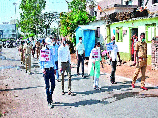 यावेळी तालुका आरोग्य अधिकारी डॉ.मोहन बच्छाव, सिन्नर नगरपरिषद वैद्यकीय अधिकारी, डॉ. प्रशांत खैरनार, डॉ. निर्मला गायकवाड, बांधकाम अभियंता सुरेश गवांदे, नितीन परदेशी, रवींद्र देशमुख, शहर अभियान व्यवस्थापक अनिल जाधव आदींसह आरोग्य विभागातील सर्व कर्मचारी, यांनी सहभाग घेतला होता.सिन्नर शहरातील नागरिकांना कोरोनाबाबत जनजागृती करण्यासाठी प्रांताधिकारी अर्चना पठारे यांच्या नेतृत्वाखाली सिन्नर तहसील प्रशासन, सिन्नर नगर परिषद, सिन्नर पोलीस प्रशासनाच्या वतीने शहरातून संचालन करण्यात आले.