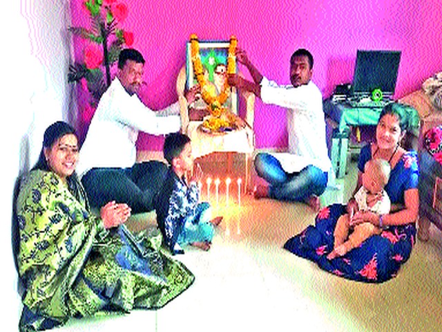 वेळुंजे : देशात कोरोना विषाणू संसर्गाने धुमाकूळ घातल्याने केलेल्या लॉकडाउनमुळे डॉ. बाबासाहेब आंबेडकर यांची जयंती शासनाच्या नियमांचे पालन करीत हरसूल परिसरात घरीच साधेपणाने साजरी करत जनजागृती करण्यात आली.ग्रामपंचायत सदस्य राहुल शार्दुल यांनी घरातच डॉ. बाबासाहेब आंबेडकर यांच्या प्रतिमेचे पूजन केले. संदीप शार्दुल यांच्या हस्ते करून पुष्पहार अर्पण करण्यात आला. यावेळी अश्विनी शार्दुल, राणी शार्दुल आदी उपस्थित होते. त्याचप्रमाणे त्र्यंबकेश्वर तालुक्यातील वेळुंजे येथे घरातच भीमजयंती साजरी करण्यात आली. सुनील काशीद, किरण काशीद, राहुल काशीद आदी तरुणांनी सोशल मीडियाच्या माध्यमातून जनजागृती करत घरातच भीम जयंती साजरी करण्याच्या आवाहनास प्रतिसाद मिळाला. तर हरसूल येथील पोपट महाले यांच्या हस्ते डॉ. बाबासाहेब आंबेडकर यांच्या प्रतिमेचे पूजन करून पुष्पहार अर्पण करण्यात आला.