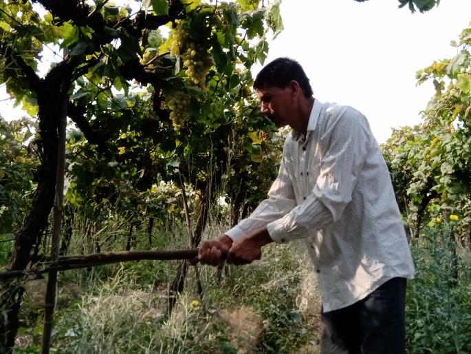 ठाणगावच्या शेतकऱ्याची द्राक्ष बागेवर कुऱ्हाड