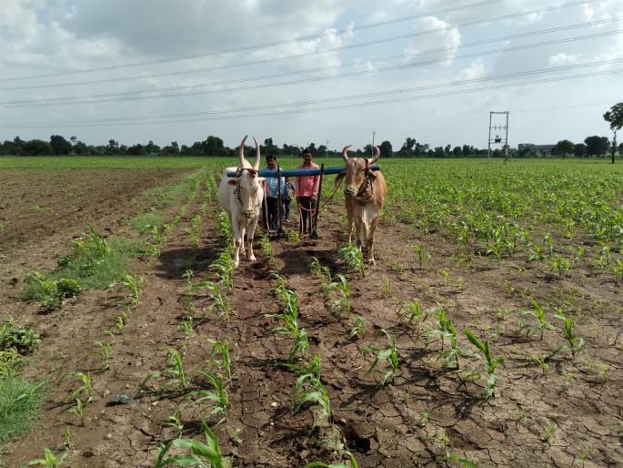 येवला तालुक्यातील उत्तर पूर्व भागात मका पिकात सुरु असलेली कोळपणी.