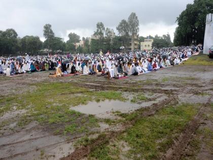 दोन दिवसांपासून पाऊस सुरू असल्याने ईदगाह मैदानावर नमाजपठणाचा सोहळा होईल की नाही, याबाबत संभ्रम निर्माण झाला होता; मात्र पुर्वसंध्येलाच शहर-ए-खतीब हिसामुद्दीन अशरफी, हाजी मीर मुख्तार अशरफी यांनी पाहणी करुन नमाजपठणाचा सोहळा आयोजित करण्याचा निर्णय जाहीर केला. त्यानुसार बुधवारी सकाळी आठ वाजेपासूनच मुस्लीम बांधवांची पावले ईदगाह मैदानाच्या दिशेने वळू लागली होती. सकाळी हलक्या सरींचा काही मिनिटे वर्षाव झाला; मात्र त्यानंतर चक्क सुर्यप्रकाश पडल्याने मुस्लीम बांधवांचा उत्साह अधिक वाढला. अधुनमधुन सुर्यप्रकाशाची किरणे तर पुन्हा ढगांची गर्दी अन् थंड वारा अशा अल्हाददायक नैसर्गिक वातावरणात उपस्थित शेकडो बांधवांनी नमाजपठण केले. धर्माचे प्रेषित हजरत मुहम्मद पैगंबर यांच्या शिकवणीनुसार ‘ईद’चे नमाजपठण मोकळ्या आकाशाखाली मैदानात केले जाते, असे यावेळी धर्मगुरूंनी सांगितले.