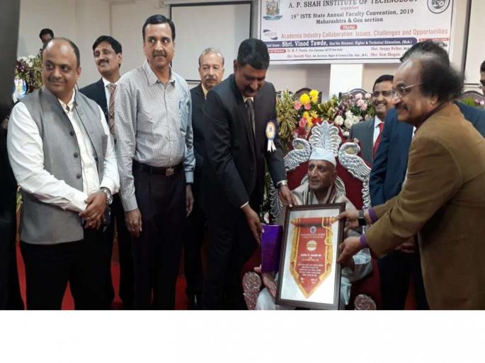 बाळासाहेब वाघ यांना जीवन गौरव पुरस्कार प्रदान करताना एआयसीटीईचे उपाध्यक्ष डॉ. एम. पी. पुनिया यांच्यासह अधिकारी.