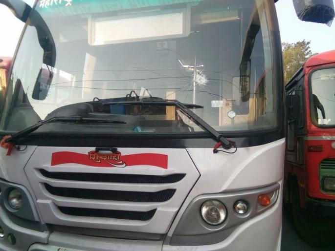 बंदला नाशिकमध्ये गालबोट; नवीन मध्यवर्ती बसस्थानकात उभ्या असलेल्या ‘शिवशाही’ वर दगडफेक