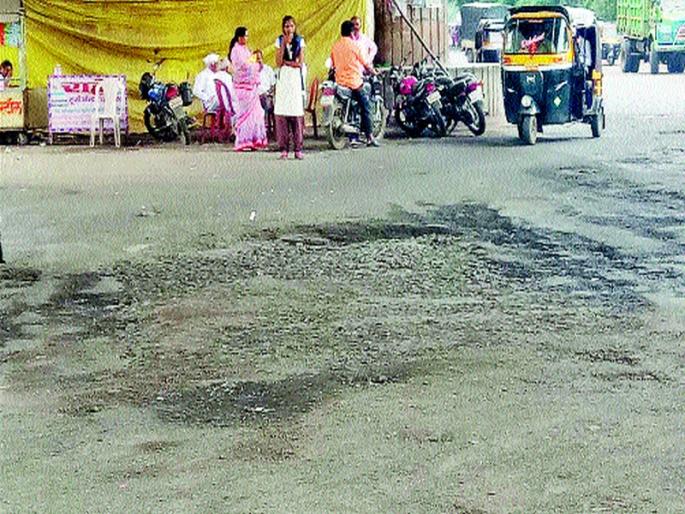 बिटको व शिवाजी पुतळा चौकात उड्डाणपुलाखाली रस्त्यावर खड्डे