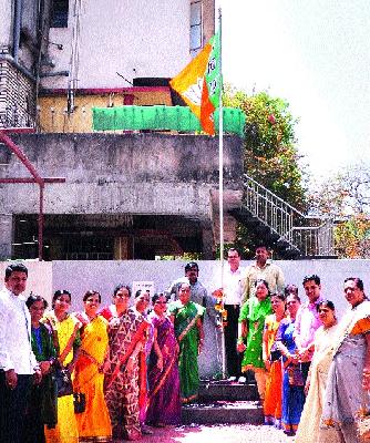 नाशिक : भारतीय जनता पार्टीच्या वसंतस्मृती कार्यालयात पक्षाचा स्थापनादिन महानगरात सर्वत्र उत्साहात साजरा करण्यात आला. भाजपाच्या वसंतस्मृती कार्यालयात झालेल्या कार्यक्रमास विजय साने, सतीश शुक्ल, देवदत्त जोशी प्रमुख पाहुणे म्हणून उपस्थित होतेप्रारंभी संघटन सरचिटणीस प्रशांत जाधव, शैलेश जुन्नरे, अरु ण शेंदुर्णीकर, सतीश शुक्ल यांच्या हस्ते झेंडा वंदन झाले. भाजपा युवा मोर्चाचे शहराध्यक्ष अजिंक्य साने यांनी प्रतिज्ञावाचन केले. एकात्ममानव वादाच्या आधारे सर्वांना समानतेची वागणूक देण्यासाठी केंद्र आणि राज्य सरकार कटिबद्ध आहेत. पक्षाचे संघटन घरोघरी पोहचविण्यासाठी कार्यकर्त्यांनी परिश्रम घ्यावे, असे आवाहन विजय साने यांनी आपल्या भाषणात केले.यावेळी डॉ. प्रशांत पाटील, महिला मोर्चा शहराध्यक्ष रोहिणी नायडू, राजेंद्र कोरडे, उदय रत्नपारखी, डॉ. चंद्रशेखर नामपूरकर, डॉ. बसंतीलाल गुजराती, भारती बागुल, पुष्पा शर्मा, सुजाता करजगीकर, हिमगौरी आडके, धनंजय पुरोहित, बाळासाहेब पाटील, स्नेहा खांदवे, संदीप खांदवे, संपत जाधव, वसंत उशीर, प्रा.सुनील बच्छाव, विजय गायखे, ललिता बिरारी, वर्षा डांगरीकर, वैशाली शहा आदि उपस्थित होते.तसेच इंदिरानगर येथेही पक्षाचा स्थापनादिन उत्साहात साजरा करण्यात आला यावेळी मान्यवरांच्या हस्ते ध्वजारोहण झाले, यावेळी सुनील देसाई, सुहास लेंभे, राजश्री शौचे, मंगेश नागरे, तुषार जोशी, उदय जोशी, अवधूत कुलकर्णी, सोनाली कुलकर्णी, अमित चव्हाण, सखाराम परब, निषाद जोशी, दिलीप येलमामे. मीनानाथ फासे आदि उपस्थित होते. प्रभाग क्र . १६ आणि प्रभाग क्र . १४ मध्येही स्थापनादिनाचा कार्यक्र म झाला. यावेळी द्वारका मंडलाचे अध्यक्ष सुरेश मानकर, कैलास वैशंपायन, अनिल ताजनपुरे, रवि भालेराव आदि उपस्थित होते. डी.जी.पी.नगर येथे नगरसेवक सतीश कुलकर्णी यांच्या प्रमुख उपस्थितीत ध्वजारोहण झाले.