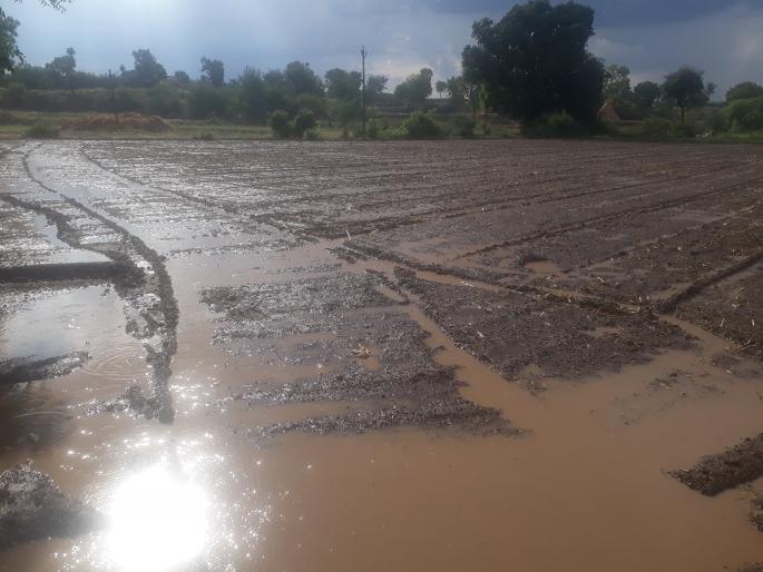 बेमोसमी पावसाने वटार परिसरात शेतात साचलेल पाणी.