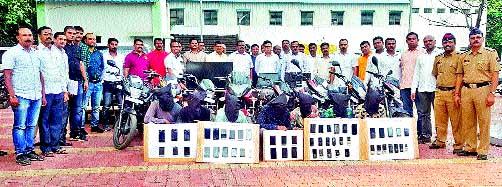 घोटी पोलिसांनी केलेल्या धडक कारवाईत शनिवारी इगतपुरी तालुक्यासह जिल्ह्यात धाडसी चोºया करणाºया टोळीला जेरबंद करण्यात यश आले आहे. या टोळीकडून मोठ्या प्रमाणात मुद्देमाल जप्त करण्यात आला आहे.