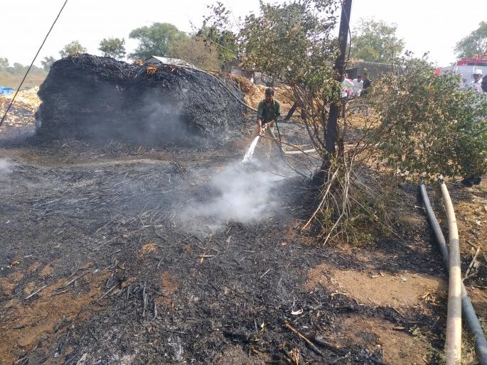 शेतातील शेततळ्याच्या पाण्यामुळे मक्याच्या बिट्या आगीपासून वाचण्यासाठी शेतकऱ्यांनी मेहनत घेतली. मात्र चारा संपूर्ण जळुन खाक झाला आहे. आगीचे तांडव जास्त प्रमाणात असल्याने चारा हा ग्रामस्थांच्या मदतीने आग विझवण्यासाठी मोठी कसरत करावी लागली.