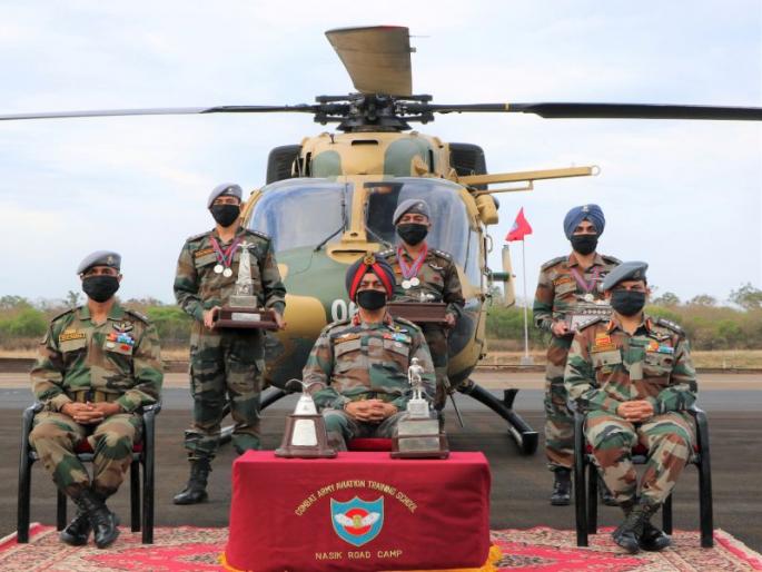 नाशिक : गांधीनगर येथील कॉम्बॅट आर्मी एव्हिएशन ट्रेनिंग स्कूलमध्ये (कॅट्स) १७ आठवड्यांचे लढाऊ हेलिकॉप्टर उड्डाणाचे प्रशिक्षण यशस्वीरित्या पूर्ण करून ४५ वैमानिकांची ३३वी तुकडी शनिवारी (दि.६) देशसेवेत दाखल झाली. स्कूलच्या कवायत मैदानावर वरिष्ठ अधिकाऱ्यांकडून प्रशिक्षणार्थी जवानांना ‘एव्हिएशन विंग’ सन्मानपुर्वक प्रदान करण्यात आली; मात्र सालाबादप्रमाणे लष्करी थाटात पार पडणारा दिमाखदार सोहळा यंदा कोरोनामुळे रद्द केला गेला.भारतीय सैन्याची एक प्रशिक्षण संस्था म्हणून सैन्य प्रशिक्षण कमान्डच्या यांच्या मार्गदर्शनाखाली गांधीनगरच्या कॅट्सची वाटचाल सुरू आहे. या सैनिकी प्रशिक्षण संस्थेला नुकतेच राष्टÑपती रामनाथ कोविंद यांच्या हस्ते ‘प्रेसिडेन्ट कलर्स’चा सन्मानही प्रदान करण्यात आला आहे. या प्रशिक्षण केंद्रातून लढाऊ हेलिकॉप्टर उड्डाणाचे शास्त्रशुध्द प्रशिक्षण प्रशिक्षणार्थी वैमानिकांना दिले जाते. येथील प्रशिक्षण घेतल्यानंतर वैमानिक भारतीय सैन्य दलात लढाऊ हेलिकॉप्टरचे वैमानिक म्हणून सेवा बजावतात.१७ आठवड्यांचा प्रशिक्षण कालावधी पुर्ण होताच प्रशिक्षणार्थी वैमानिकांना शनिवारी पारंपरिक प्रथेनुसार कॅट्सचे कमान्डंट ब्रिगेडियर सरबजितसिंग भल्ला यांच्या हस्ते ‘एव्हिएशन विंग’ वैमानिकांना प्रदान करण्यात आली. तसेच उत्कृष्ट प्रशिक्षणार्थी वैमानिकांना विविध स्मृतिचिन्ह देऊन गौरविण्यात आले. गेल्या डिसेंबर महिन्यात रंगलेल्या ३२व्या तुकडीच्या सोहळ्याप्रमाणे यंदाचा सोहळा पुर्णपणे वेगळाच होता. कारण या सोहळ्यावर कोरोना आजाराचे सावट होते. यामुळे वैमानिकांसह सर्व वरिष्ठ अधिकाऱ्यांनी तोंडावर मास्क बांधून व शारिरिक अंतर राखून सोहळ्यात सहभाग घेतला. यावेळी केंद्र सरकारकडून कोरोना आजारापासून बचावासाठी सुचविण्यात आलेल्या सर्व उपायोजनांचे पालन करत सोहळा आटोपशीर घेतला गेला....असे आहेत मानकरी प्रशिक्षणार्थीकॅट्समध्ये १७ आठवड्यांचे हेलिकॉप्टर उड्डाणाचे यशस्वी प्रशिक्षण घेत असताना सर्वच गटांत उत्कृष्ट अशा अष्टपैलू कामगिरी करत कॅप्टन ओमकार लोखंडे यांनी मानाची ‘सिल्वर चित्ता’ व उत्कृष्ट उड्डाणाकरिता दिले जाणारे चषक पटकाविले. तसेच गुणवत्तापुर्ण कामगिरीसाठी देण्यात येणारी कॅप्टन एस.के. शर्मा स्मृति चषक कॅप्टन सुरज फर्तयाल यांनी तर कॅप्टन हरप्रित सिंग अरनेजा यांनी बेस्ट इन ग्राउंड विषयात नैपुण्य मिळविले. या तीघा उत्कृष्ट मानकरींना यावेळी गौरविण्यात आले.