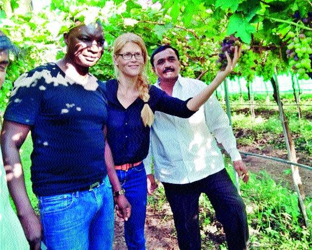 कळवण येथे द्राक्षबागेची पाहणी करताना हॉलंड येथील निर्यातदार.