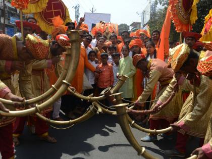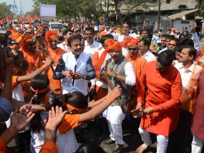 नाशिक : 'तुमचं आमचं नातं काय, जय जिजाऊ जय शिवराय' या गगणभेदी गजर्नेसह शिवभक्तांनी छत्रपती शिवाजी महाराज व छत्रपती संभाजी महाराजाच्या जयघोषाने सोमवारी (दि.19) अवघी नाशिकनगरी दणाणून सोडली. छत्रपती शिवाजी महाराज यांच्या जयंतीनिमित्त कान्हेरे मैदानापासून ते पंचवटी कारंजार्पयत काढण्यात आलेल्या पालखी मिरवणुकीत छत्रपती शिवाजी महाराजांचा जयजयकार करण्यात आला. यावेळी पालखी सोहळ्य़ात सहभागी पारंपारिक वाद्यांच्या तालावर विविध लोककलांच्या सादरीकरणासोबत लेझिम पथक आणि मिरवणुकीत शिवभक्तांनीही ठेका धरला.छत्रपती शिवाजी महाराजांच्या जन्मोत्सव सोहळ्य़ानिमित्त हुतात्मा अनंत कान्हेरे मैदानावर सकाळी शिववंदना व जिजाऊ वंदना करण्यात आली. यावेळी केंद्रीय संरक्षण राज्यमंत्री सुभाष भामरे यांच्या हस्ते आयोजकांना एक लाख नागरिकांच्या सहभागासह जिवजन्मोत्सव साजरा करण्यासाठी जिनियस बुक ऑफ वर्ल्ड रेकॉर्ड आणि वंडर बुक ऑफ वर्ल्ड रेकॉर्डमध्ये नोंदी प्रमाणपत्र प्रदान करण्यात आले. यावेळी शिवजन्मोत्सव सोहळा समितीचे ग्रामीण अध्यक्ष आमदार अपुर्व हिरे, शिवजन्मोत्सव सोहळा समितीचे शहर अध्यक्ष सुनील बागुल, आमदार सीमा हिरे, छावा क्रांतीवीर संघटनेचे संस्थापक अध्यक्ष करण गायकर आदिंसह विविध संघटनांचे पदाधिकारी व कार्यकर्ते उपस्थित होते. त्यानंतर गगणभेगी तुताऱ्यांच्या निनादांसह ढोल ताशाच्या गजरात मिरवणुकीला सुरुवात झाली.