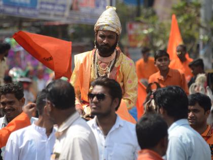 मिरवणुकीत छत्रपती शिवाजी महाराजांचा संत तुकाराम महाराज यांच्यासोबतचा संवाद दाखवणारा चित्ररथ, त्यानंत राजमाता जिजाऊ बाल शिवाजींना स्वराडज्य स्थापनेचे धडे देतानाचे दर्शन घडविणाऱ्यां चित्ररथासोबतच संभाजी महाराजांची शौर्यगाथा सांगणाऱ्या चित्ररथांचाही मिरवणुकीत समावेश करण्यात आला होता. शहरातील विविध शाळा महाविद्यालयातील विद्यार्थ्यांनी मिरवणुकीत सहभागी होत ढोल ताशाच्या तालावर लेझीमनृत्य सादर केले. छत्रपती शिवाजी महाराजांची व छत्रपती संभाजी महाराजांची वेशभूषा करून काही घोडेस्वारांनीही मिरवणुकीत सहभागी होत शिवभक्तांचे लक्ष वेधून घेतले. अशोक स्तंभावरून पुढे रविवार कारंजावर पोहचल्यानंतर मिरवणुकीत पोहचल्यानंतर येथे छत्रपती शिवाजी महाराजांच्या पुर्णाकृती पुतळ्य़ास अभिवादन करण्यात आले. छत्रपती शिवाजी महाराजांना पंचामृताने अभिषेक करण्यात आल्यानंतर पालखी सोहळ्य़ाची सांगता झाली. पंचवटी कारंजा येथील सोहळ्य़ाचे सूत्रसंचालन तूषार जगताप यांनी केले.