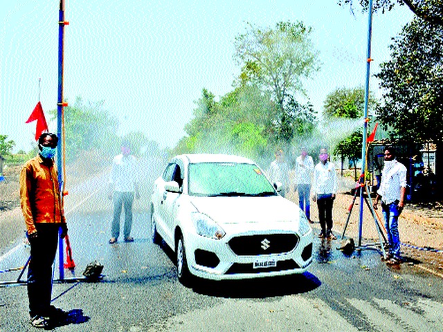 मालेगावकडून येणाऱ्या-जाणाºया वाहनांसाठी नवी धांद्री येथील शिव मल्हार ग्रुपच्या कार्यकर्त्यांनी सटाणा-मालेगाव रस्त्यावर सॅनिटायझर गेट तयार करून प्रत्येक वाहन व वाहनातील व्यक्तींना सॅनिटाइज करण्यात येत आहे. हा उपक्र म संजय माळी, कमलेश पगारे, सुभाष माळी, अनिल मोरे, सुभाष चव्हाण, नागू चव्हाण यांनी स्वखर्चाने सुरू केला असून, त्याचे सर्वत्र स्वागत होत आहे. तर नामपूर, जायखेडा, ताहाराबाद येथे ग्रामपंचायतने सॅनिटायझर गेट बसविले आहे.