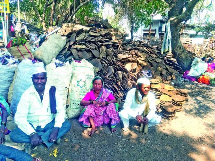 पेठ : संपूर्ण देश होळीच्या सप्तरंगी रंगांची उधळण करून आपल्या सोनेरी आयुष्यात रंग भरत असताना दुसरीकडे याच देशातील आदिवासी कष्टकरी जनता मात्र शेण व गोवºयांमध्येच आपले बेरंग झालेले जीवन रंगीन करताना दिसून येत आहे. देशभर होलिकोत्सव दरवर्षी उत्साहपूर्ण वातावरणात साजरा केला जातो. ग्रामीण भागाबरोबर शहरी वस्तीत या सणाची रंगत आधिक दिसून येते. शहरात चौकाचौकात, सोसायट्या, बंगले व चाळीत होळी साजरी केली जाते. यासाठी लागणाºया गोवºया पेठ, सुरगाणा, त्र्यंबकेश्वर या आदिवासी तालुक्यातील कष्टकरी मजूर होळीच्या आदल्या दिवशी घेऊन शहरात दाखल होत असतात. वरवर साध्या दिसणाºया या गोवºया जवळपास सहा महिन्यांपासून थापायला सुरुवात करावी लागते. दिवाळीचा सण झाल्यापासून गायी, म्हशींच्या शेणापासून व त्यात गवत टाकून गोवºया थापतात. एक एक गोवरी वाळवून त्याचा साठा करून ठेवला जातो. होळीच्या पूर्वसंध्येला भाडोत्री वाहनातून गोवºया नाशिकच्या पंचवटी, पेठरोड, गंगाघाट आदी ठिकाणी रस्त्यावर जागा मिळेल तेथे विक्रीसाठी ठेवल्या जातात. रक्ताचे पाणी करून तयार केलेल्या गोवºया विकून कुटुंबाचा चरितार्थ भागविण्यात येतो.गावाकडे होळीची पारंपरिक यात्रा, सण सोडून अनेक कुटुंब ऐन सणवाराला रस्त्यावर वास्तव्य करून राहतात. वर्षभराची पोटाची खळगी भरण्यासाठी सणाचा आनंद बाजूला ठेवून आदिवासी कष्टकरी गोवºया विकण्यात दंग असतात. चारशे रुपये शेकड्यापासून या गोवºयांना भाव मिळत असला तरीही होळीच्या दिवशी शिल्लक गोवºया मिळेल त्या भावात विकून घराची वाट धरतात.