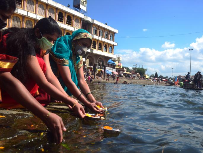 आश्विन अधिक मासाची शुक्रवारी सांगता झाली. त्यानिमित्त गोदाघाटावर महिलांनी दीपदान करत गोदामाईला नमन केले. यंदा कोरोनामुळे गर्दीवर मात्र परिणाम दिसून आला.