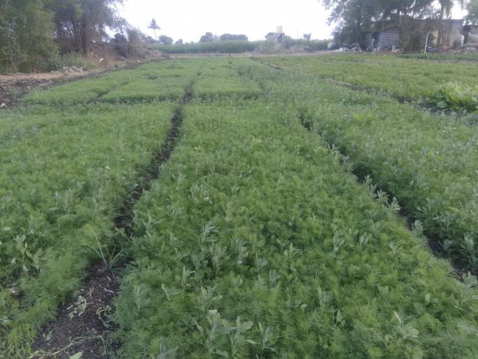 जळगाव नेऊर परिसरात आठवडे बाजार बंदमुळे शेतातच पडून उभे असलेले शेपूचे पीक.