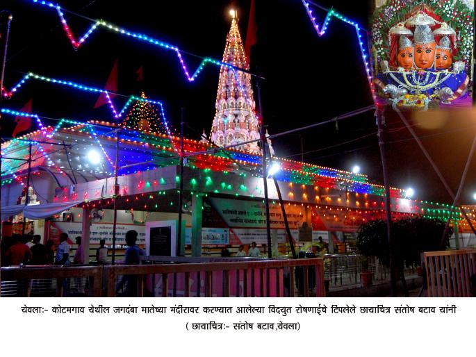 येवला : तालुक्यातील कोटमगाव येथील महाकाली, महालक्ष्मी आणि महासरस्वती या तीन देवींच्या मुखांची ए कत्रित मूर्ती या ठिकाणी असल्याने श्री जगदंबा मातेचे हे देवस्थान इतर कोणत्याही देवस्थानापेक्षा वेगळी ओळख जपून आहे. मंदिराला मनमोहक अशी सुंदर रोषणाई करण्यात आली आहे.