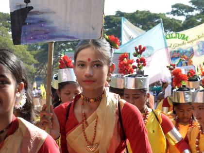 एकता हैं जहां खुशहाली हैं वहा’, ‘ सभी धर्म की एक पुकार एकता को करो साकार’, ‘जो स्वत: सद्भाव बाळगतो, तो सार्वभौमत्वाच्या सामंजस्यात राहतो’, ‘उत्तम आरोग्य हीच धनसंपदा’, ‘युध्द नको शांतता हवी’, ‘विविध जाती-धर्म हाचा देशाचा अभिमान’ अशा समाजप्रबोधनपर घोषवाक्यांचे फलक झळकवित एक दोन नव्हे तर तब्बल २२ राज्यांमधील शालेय विद्यार्थ्यांनी आपल्या पारंपरिक पोशाखात रस्त्यावर उतरून भव्य शांतता फे री काढली.