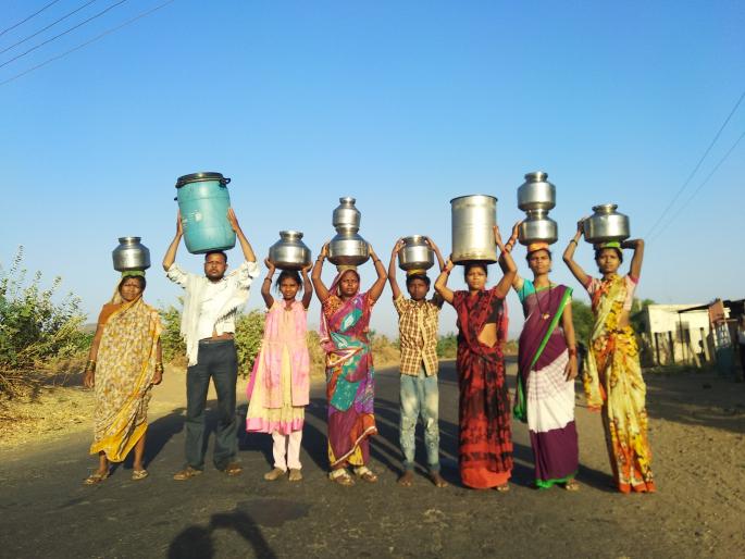 गावातील महिला दूरवर जाऊन डोक्यावर पाणी घेऊन येताना.