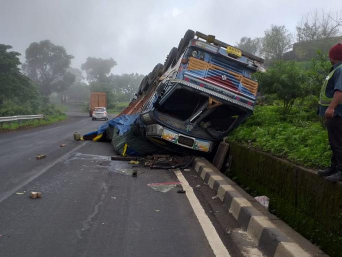 दाट धुक्यामुळे कसारा घाटात ट्रक उलटला