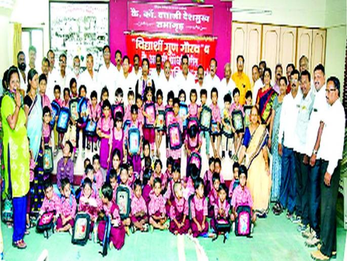 एकलहरे : महाराष्ट्र राज्य वीज वर्कर्स फेडरेशन पतसंस्थेच्या वतीने आर्थिक दुर्बल घटकातील विद्यार्थ्यांसाठी माझी इयत्ता पहिली उपक्रमांतर्गत शालेय साहित्य मोफत देण्याचा उपक्रम स्तुत्य असल्याचे प्रतिपादन फेडरेशनचे नेते विश्राम धनवटे यांनी केले. फेडरेशनचे दिवंगत नेते आर. सी. चौधरी यांच्या संकल्पनेतून सुरू झालेला हा उपक्रम आजही पतसंस्थेच्या पदाधिकाऱ्यांनी चालू ठेवला आहे, ही गौरवास्पद बाब असल्याचे धनवटे यांनी सांगितले. खरबंदा पार्क येथील संस्थेच्या सभागृहात विद्यार्थी गुणगौरव सोहळा पार पडला. यावेळी प्रमुख पाहुणे म्हणून पतसंस्थेचे अध्यक्ष पोपटराव पेखळे, पंडितराव कुमावत, प्रताप भालके, ज्योती नटराजन, सुभाष काकड, पंडितराव पगार आदी मान्यवर उपस्थित होते. माझी इयत्ता पहिली उपक्रमांतर्गत आदिवासी व आर्थिक दुर्बल घटकातील सुमारे शंभर विद्यार्थ्यांना पाहुण्यांच्या हस्ते पाटी, दप्तर व गणवेश मोफत भेट देण्यात आले. इयत्ता चौथी ते पदवीपर्यंत शिक्षण घेणाºया सभासदांच्या पाल्यांना दिवंगत ज्येष्ठ नेते ग. रा. तांबोळी यांच्या स्मरणार्थ पारितोषिके देऊन गौरविण्यात आले.