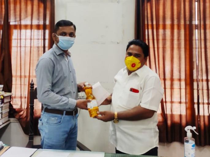 सिन्नर : दसरा, दिवाळी सण साजरा करण्यासाठी ग्रामीण भागातील गरीब जनतेला रेशन कार्डवर जीवनावश्यक वस्तू कमी दरात उपलब्ध करून देण्याची मागणी भाजपाचे तालुका उपाध्यक्ष दत्तात्रेय गोसावी यांनी तहसीलदारांकडे केली.सोबत एक लिटर खाद्य तेलाची बाटली तहसीलदारांना भेट देऊन गांधीगिरी करण्यात आली. कोरोना काळात लॉकडाऊनमुळे ग्रामीण भागातील गरीब लोकांच्या हाताला काम नसल्याने त्यांची आर्थिक परिस्थिती हालाखीची झाली आहेत. त्यात खाद्य तेलाच्या किमती गगनाला भिडल्या असून प्रतिलिटर 105 ते 140 रुपये दर झाले असून दर कमी करावे. खाद्यतेल, मैदा, साखर, हरभरा डाळ, रवा आदींसह इतर जीवनाश्यक वस्तू रेशन कार्डवर कमी दरात उपलब्ध करून देऊन गोरगरीबांना दिलासा द्यावा, अशी मागणी गोसावी यांनी निवेदनाद्वारे केली. तसेच निवेदनाची प्रत जिल्ह्याचे पालकमंत्री छगन भुजबळ यांना पाठविली असल्याचे त्यांनी सांगितले.