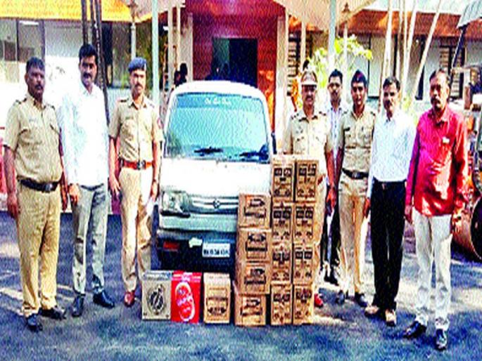 पंचवटी : नवीन आडगाव नाक्यावरील एचडीएफसी बँकेसमोरील रस्त्यावर उभ्या असलेल्या ओम्नी कारमधून पंचवटी पोलिसांनी १८ देशी दारूचे बॉक्स व कार असा ३ लाख ३६ हजार रुपये किमतीचा मुद्देमाल जप्त केल्याची घटना मंगळवारी (दि़१८) दुपारच्या सुमारास घडली़ दरम्यान, या मद्याची वाहतूक करणारा संशयित बाळू विष्णू बर्डे (आडगाव) यास अटक करण्यात आली आहे़ नाताळ तसेच नववर्षाच्या स्वागतासाठी शहरातील काही हॉटेल्समध्ये आडगाव येथील वसंतदादानगर परिसरात राहणारा संशयित बाळू बर्डे हा मंगळवारी दुपारच्या सुमारास ओम्नी कारमधून (एमएच १५, डीएम ६९६५) दारू पुरविणार असल्याची माहिती वरिष्ठ पोलीस निरीक्षक मधुकर कड यांना मिळाली होती़ या कारमध्ये देशी दारू भरलेले १८ बॉक्स आढळून आले. याप्रकरणी पंचवटी पोलीस ठाण्यात संशयित बर्डे विरोधात गुन्हा दाखल करण्यात आला आहे़गुन्हे शोध पथकाची कामगिरीपंचवटी पोलीस ठाण्यातील गुन्हे शोध पथकातील पोलीस हवालदार अरुण गायकवाड, संजय पाटील, बाळकृष्ण ठाकरे, सुरेश नरवडे, संदीप शेळके, मयूरी गांगुर्डे, उत्तम खरपडे, सागर पांढरे आदींनी नवीन आडगाव नाका परिसरात सापळा रचून ओम्नी कार अडवून तपासणी केली़