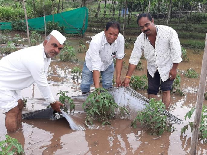 शनिवारी (दि.२०) दुपारपर्यंत द्राक्षबागांमध्ये मोठ्या प्रमाणात पाणी साचले होते. जिव्हाळे येथील काही शेतकऱ्यांच्या शेतात टमाटो, द्राक्षबागांचे बºयाच प्रमाणात नुकसान झाले. या नुकसानग्रस्त शेतकऱ्यांना भरपाई देण्याची मागणी शेतकरी संघटनेने भगवान बोराडे, सुनिल पवार, किरण गवारे, शिवाजी गुरगुडे आदींनी केले आहे.