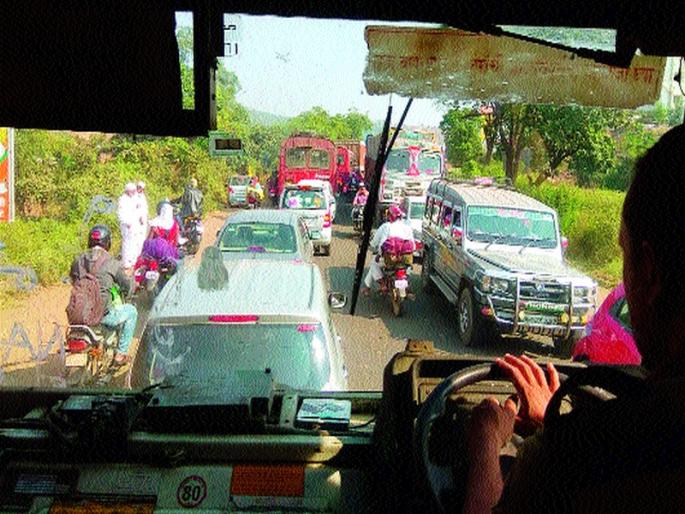 वाहतूक कोंडीमुळे पुणे मार्गावरील बसेस विलंबाने