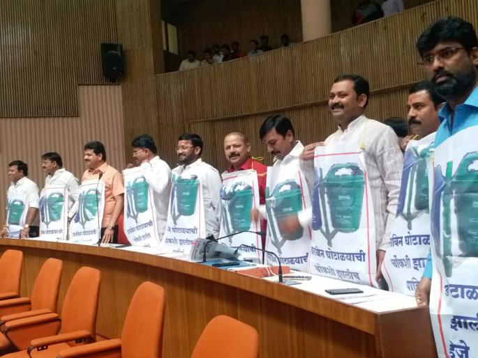 शिवसेनेच्या सदस्यांनी ‘डसबीन घोटाळ्याची चौकशी झालीच पाहिजे’ अशा घोषणा लिहिलेले फ्लेक्स अंगावर चढवत सभागृहात डस्टबिन खरेदीप्रकरणी आक्रमक भूमिका घेतली. पंतप्रधान मोदी यांच्या स्वच्छ भारत अभियानाला काळीमा फासण्याचे काम प्रशासन करत असल्याचा आरोप शिवसेनेने करत या प्रकरणी सखोल चौकशीची मागणी केली.