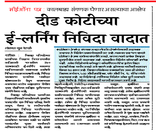 यासंदर्भात ‘लोकमत’ने ३१ आॅगस्ट रोजी ‘दीड कोटींची ई-लर्निंग निविदा वादात’ असल्याबाबत वृत्त प्रकाशित करून याकडे लक्ष वेधले होते. जिल्हा परिषदेच्या प्राथमिक शिक्षण विभागामार्फत आदिवासी भागातील २७० शाळांसाठी ई-लर्निंग व्यवस्था बसविण्यासाठी काढण्यात आलेली निविदा वादात सापडल्याचे तसेच ही निविदा काढताना ठरावीक मक्तेदार डोळ्यासमोर ठेवून काढण्यात आल्याचा आरोप झाला होता. यासंदर्भात शिक्षण विभागाने एक निविदा प्रसिद्ध करून ७ सप्टेंबरपर्यंत आॅनलाइन निविदा मागविण्यात आल्या होत्या. या निविदेत ई-लर्निंगची व्यवस्था पुरविण्यासाठी एकाच कंपनीचे संगणक हार्डवेअर व सॉफ्टवेअर असणे आवश्यक असल्याची अट टाकण्यात आली होती. वस्तुत: हार्डवेअर व सॉफ्टवेअरमध्ये एकच कंपनी तज्ज्ञ असू शकत नाही. तसेच हार्डवेअरमध्ये संगणक व प्रोजेक्टर एकत्रित असणारी मशीन असण्याची अट टाकण्यात आली होती. तसेच प्रोजेक्टर वेगळे व संगणक अथवा लॅपटॉप वेगळे घेण्याची आवश्यक असताना ते निविदेत एकत्र घेण्याची अट आहे. त्याचाच एक भाग म्हणजे प्रोजेक्टर हे उच्च दर्जाच्या कंपनीचे असावे, कारण त्याचे प्रत्येक जिल्ह्णात दुरुस्ती केंद्र असणे आवश्यक आहे. याबाबीचा निविदेत कोणताही उल्लेख नव्हता. तसेच निविदेमध्ये कॉम्प्युटर कॉन्फ्रिगेशन लेटेस्ट इन्टेल किंवा एएमडी बेस्ड मशीन असावे, असे म्हटले होते. इंटेलच्या मशीनची बाजारात किंमत ७० हजार आहे. जिल्हा परिषदेच्या प्रती शाळांकरिता तरतूद फक्त ३० ते ३५ हजार रुपयांची आहे.