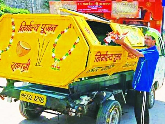 नाशिक : निर्माल्य नदीपात्रात न टाकता थेट निर्माल्य रथात टाकावे, यासाठी गणेशोत्सव काळात निर्माल्य संकलनासाठी रोटरी एनक्लेव क्लब व महापालिका प्रशासन संयुक्त विद्यमाने ‘निर्माल्य रथ’ कार्यरत ठेवणार आहे. गणेश चतुर्थीपासून या रथाचा शुभारंभ झाला असून अनंत चतुर्दशीपर्यंत रथ कार्यान्वित राहणार असून निर्माल्याचे संकलन करणार आहे. यामुळे गोदावरी नदीचे प्रदूषण रोखण्यास मदत होणार आहे. उत्सव काळात गणपतीला अर्पण केलेली फुले, हार, बेल, शमी, दुर्वा, रुई, नैवेद्य इतर साहित्यांचा पसारा रस्त्यांवर पसरलेले दिसतात. तसेच या निर्माल्याचे वाहत्या पाण्यात म्हणजेच नदीत विसर्जन करण्याची पूर्वापार पद्धत आहे. देवी-देवतांना वाहिलेले निर्माल्य पवित्र समजतात. मोठ्या प्रमाणावर नदीच्या पाण्याचे प्रदूषण होत असते. त्यामुळे मनपा व रोटरीच्या काही जणांनी पुढाकार घेत गणेशोत्सवात शहरात जमणारे सर्व निर्माल्य जमा करून शहर स्वच्छ ठेवणे व नदीचे प्रदूषण टाळण्यासाठी निर्माल्य रथ फिरवण्याची संकल्पना प्रत्यक्षात उतरवली आहे. सदर रथ आजपासून ते विसर्जनापर्यंत दररोज सकाळी १० ते ५ यावेळेत सिडको येथून सुरुवात करणार आहे. तरी या उपक्रमास शहरातील सर्वच नागरिकांनी प्रतिसाद देण्याचे आवाहन रोटरीचे प्रांतपाल राजेंद्र भामरे, अध्यक्ष गुरमित सिंग रावल, मनपा आरोग्य विभागाचे डॉ. बुकाने, डॉ. सचिन हिरे यांनी केले आहे.गणेशोत्सव काळात घरोघरी मोठ्या प्रमाणावर निर्माल्य जमा होत असते. त्यात हे निर्माल्य नागरिकांकडून नदीच्या पाण्यात टाकले जाते. त्यामुळे नदीच्या पाण्याचे मोठ्या प्रमाणावर प्रदूषण होत असते. तसेच काही जण हे निर्माल्य गोदाघाटपरिसरात आणून टाकत असतात. त्यामुळे आम्ही ‘निर्माल्य रथ’ ही नवीन संकल्पना राबवित आहोत. यासाठी मनपाचे आम्हाला मोठे सहकार्य लाभले आहे. सुरुवातील एक निर्माल्य रथ शहरात फिरवला जाणार असून, गरज पडल्यास यामध्ये वाढ करणार आहोत.- गुरमित सिंग रावल, अध्यक्ष, रोटरी एनक्लेव क्लब